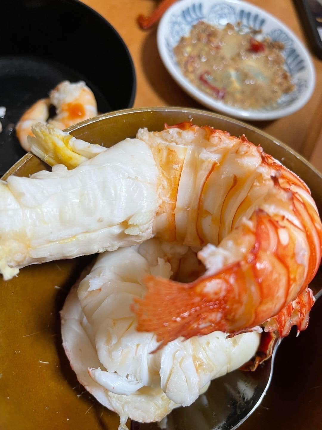 - Bước 3: Cho tôm vào chảo vừa phi tỏi, đảo đến khi tôm hùm xanh chín, chuyển sang màu cam.